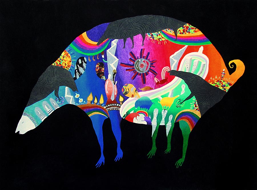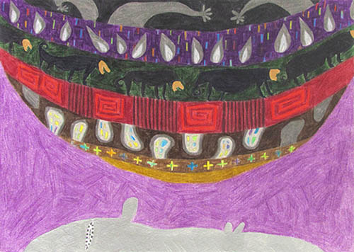 Color pencil, acrylic gouache on paper